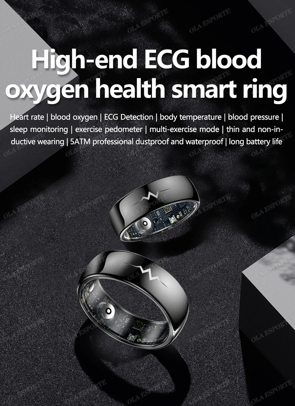 New ECG Smart Ring Men Women Bluetooth Blood Heart Rate Blood Oxygen Health Monitoring Multi Sports 5ATM Waterproof smartring