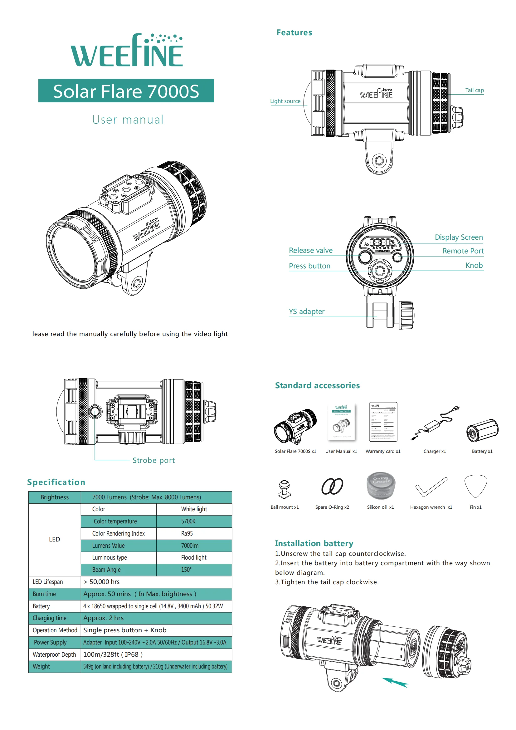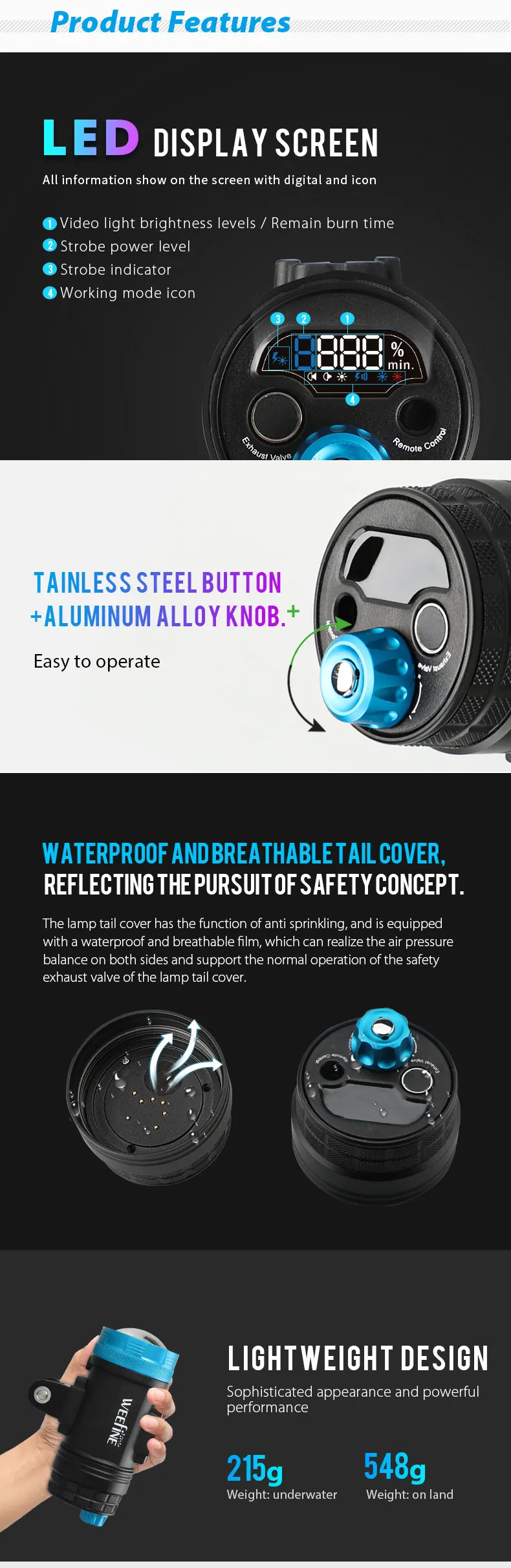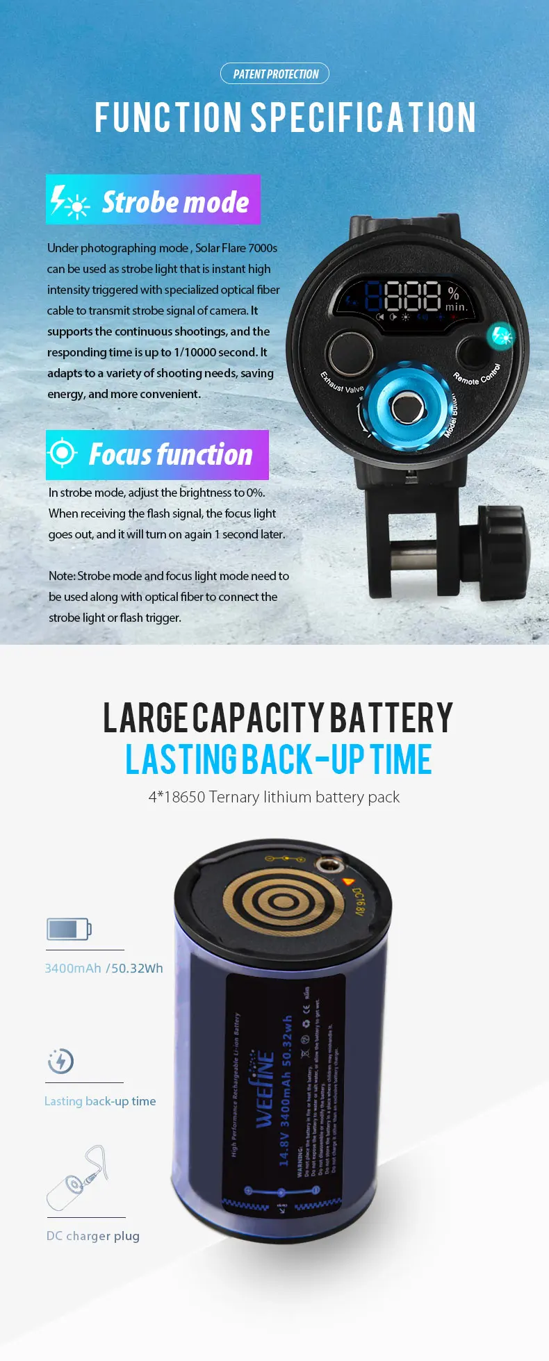 Strobe Mode: Max 8000 lumens/5700K/CRI:Ra95