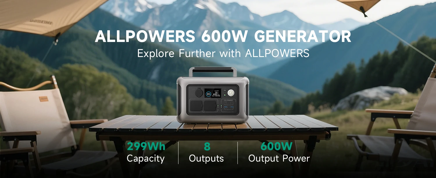 ALLPOWERS R600 Portable Powerstation 299wh LiFePO4 Battery with 600W AC Outlets for Outdoor
