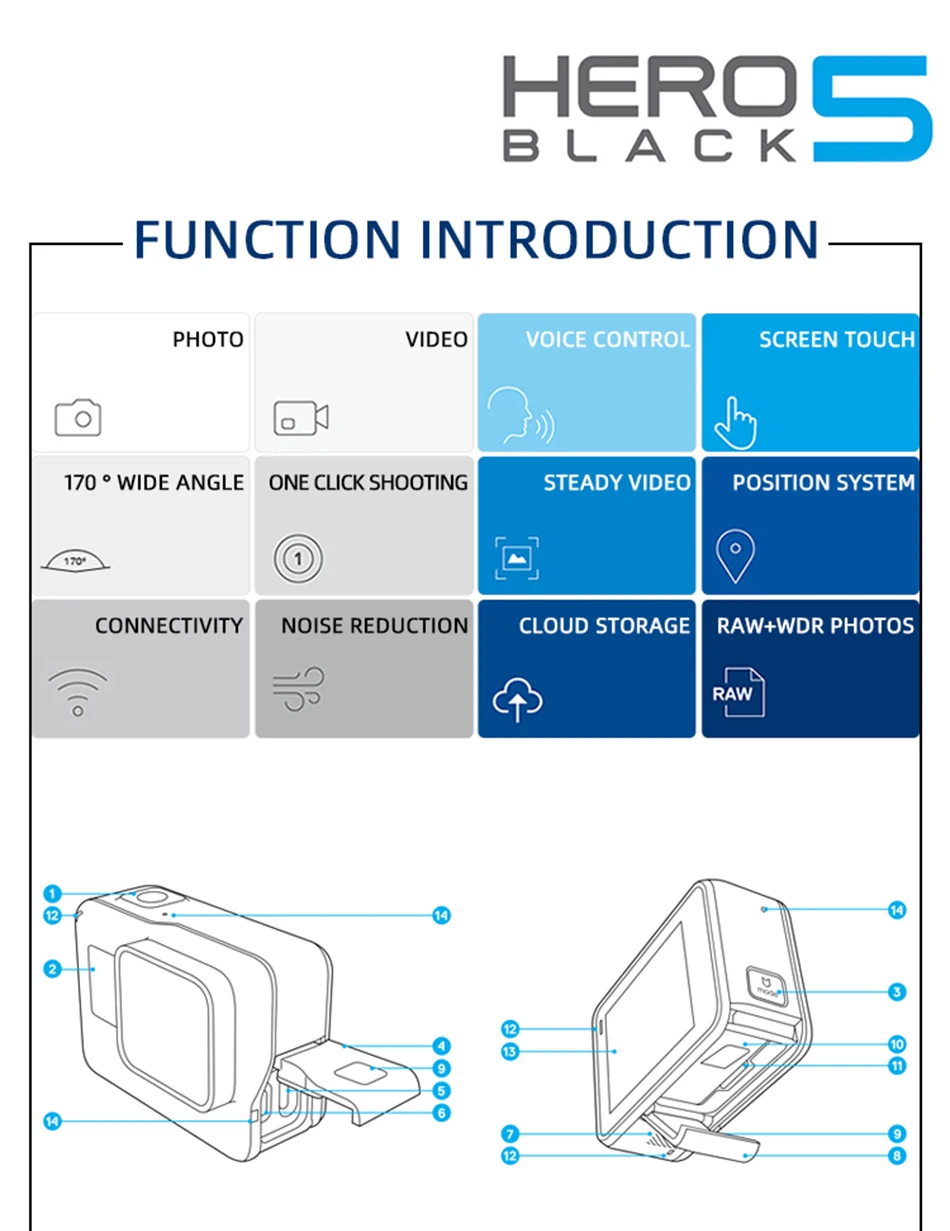 Gopro hero 5 black action camera 4k30 fram ultra hd dv wifi Anti shake Motorcycle riding skiing Aerial photography go pro camera