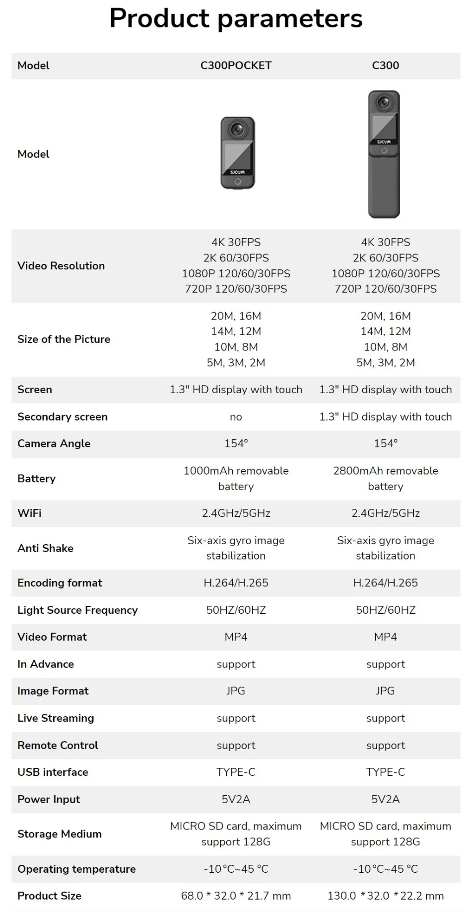 SJCAM C300 Pocket Action Camera 4K 30FPS 6-Axis GYRO Image Stabilization Super Night Vision 5G WiFi Remote Webcam Sports DV Cam